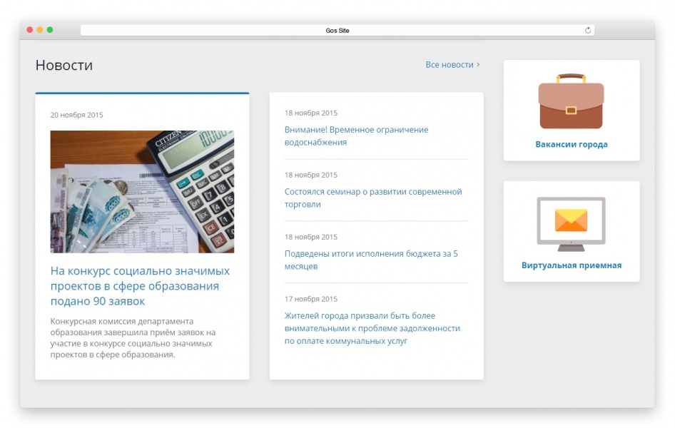 Коробочное решение для создания официального сайта государственной организации, органа власти и местного самоуправления или их подразделений.