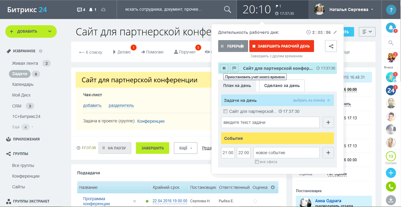 С помощью продукта «1С-Битрикс24» можно создать внутренний портал государственной организации» для автоматизация ежедневной работы служащего
