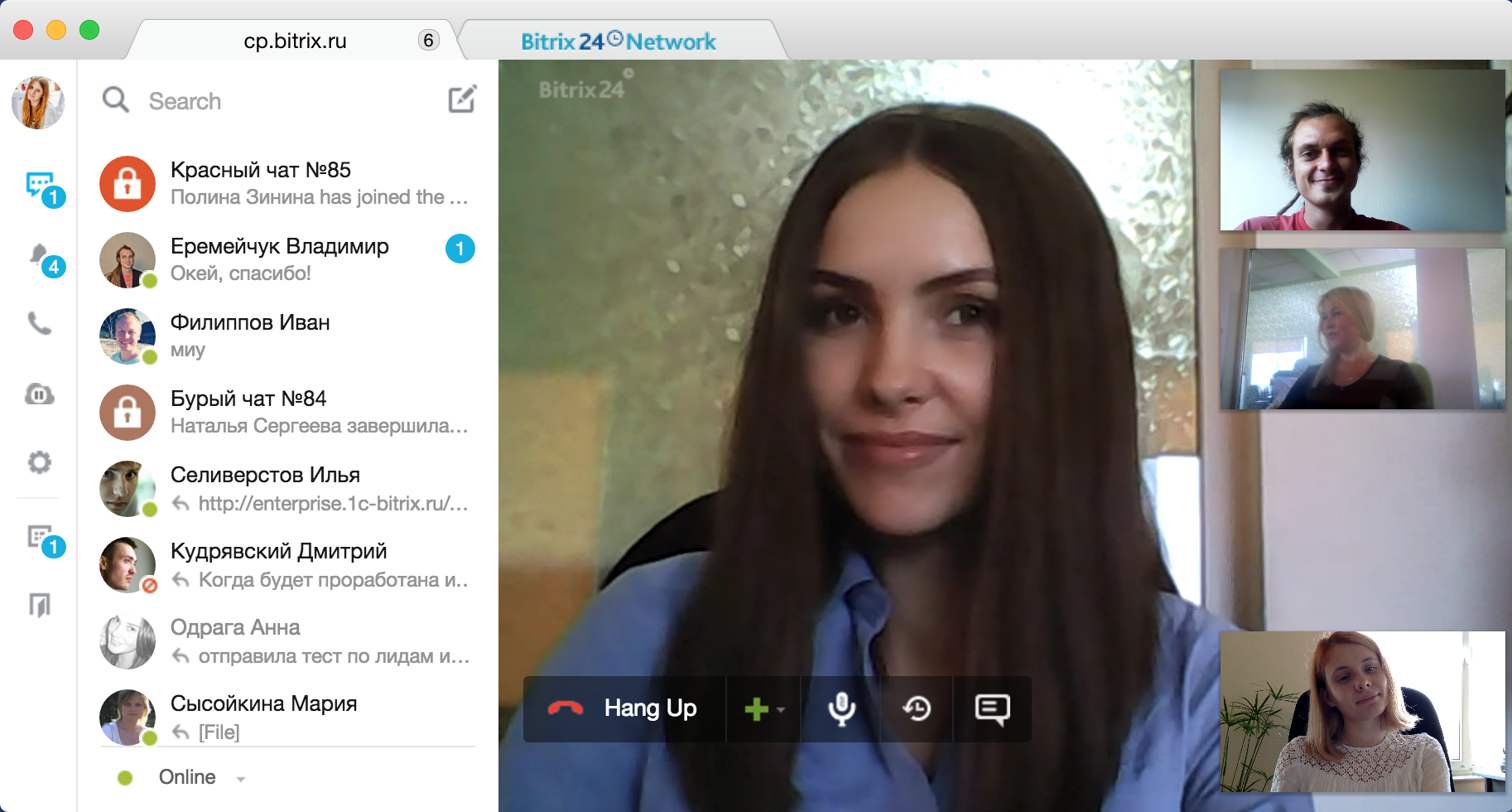 - Внутренние и внешние коммуникации: живая лента и бизнес-чат.